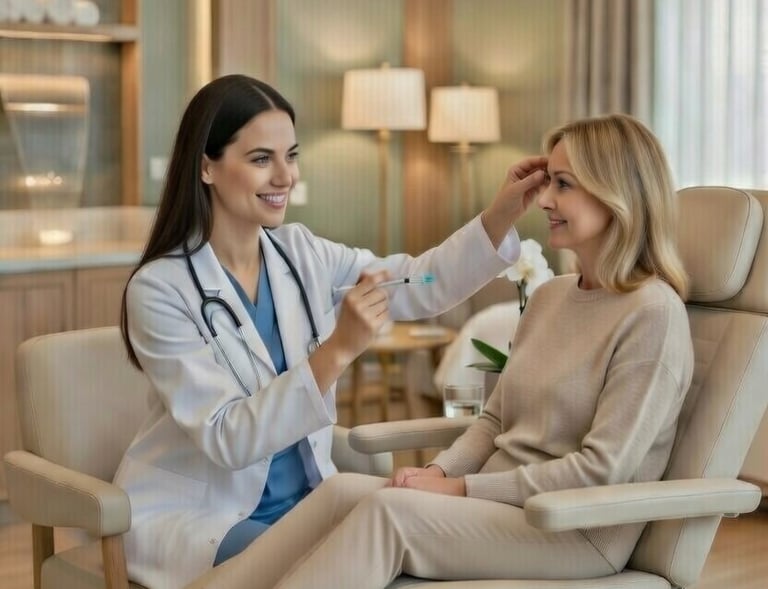 Neuromodulators like Botox and Jeuveau: precise injections for natural-looking wrinkle reduction, smoothing of frown lines, crow’s feet, and forehead lines to achieve a refreshed, youthful appearance without looking “frozen”